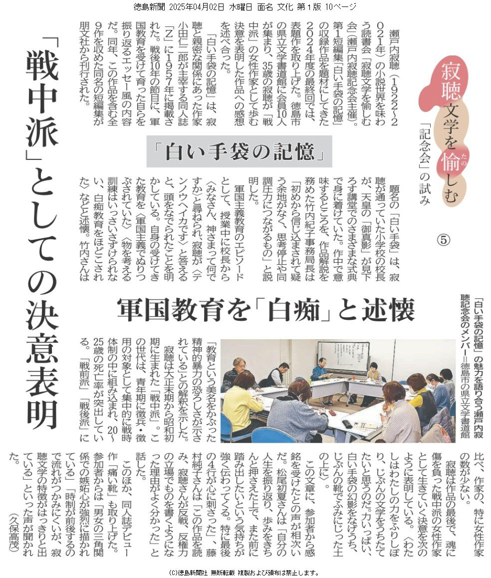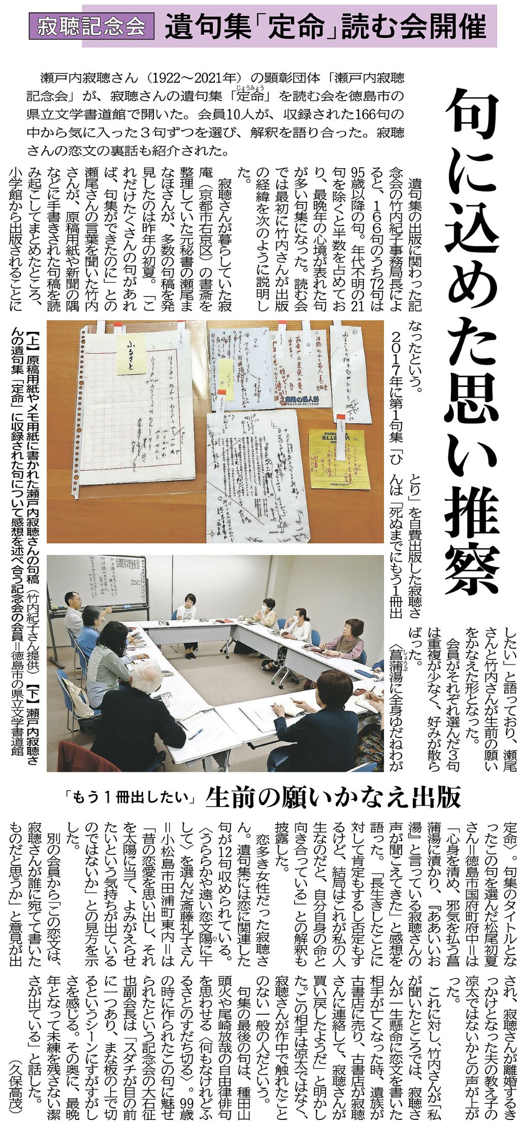 寂聴記念会 遺句集「定命」読む会開催