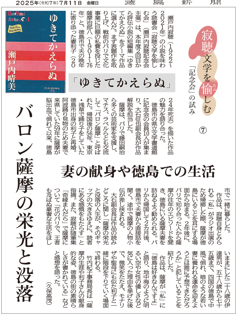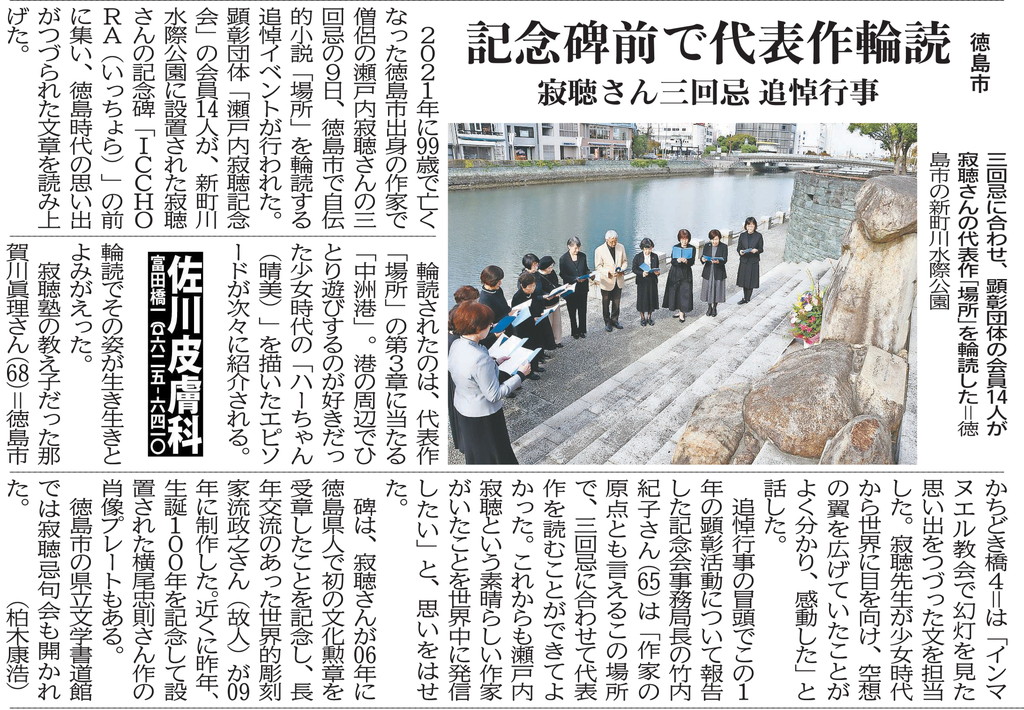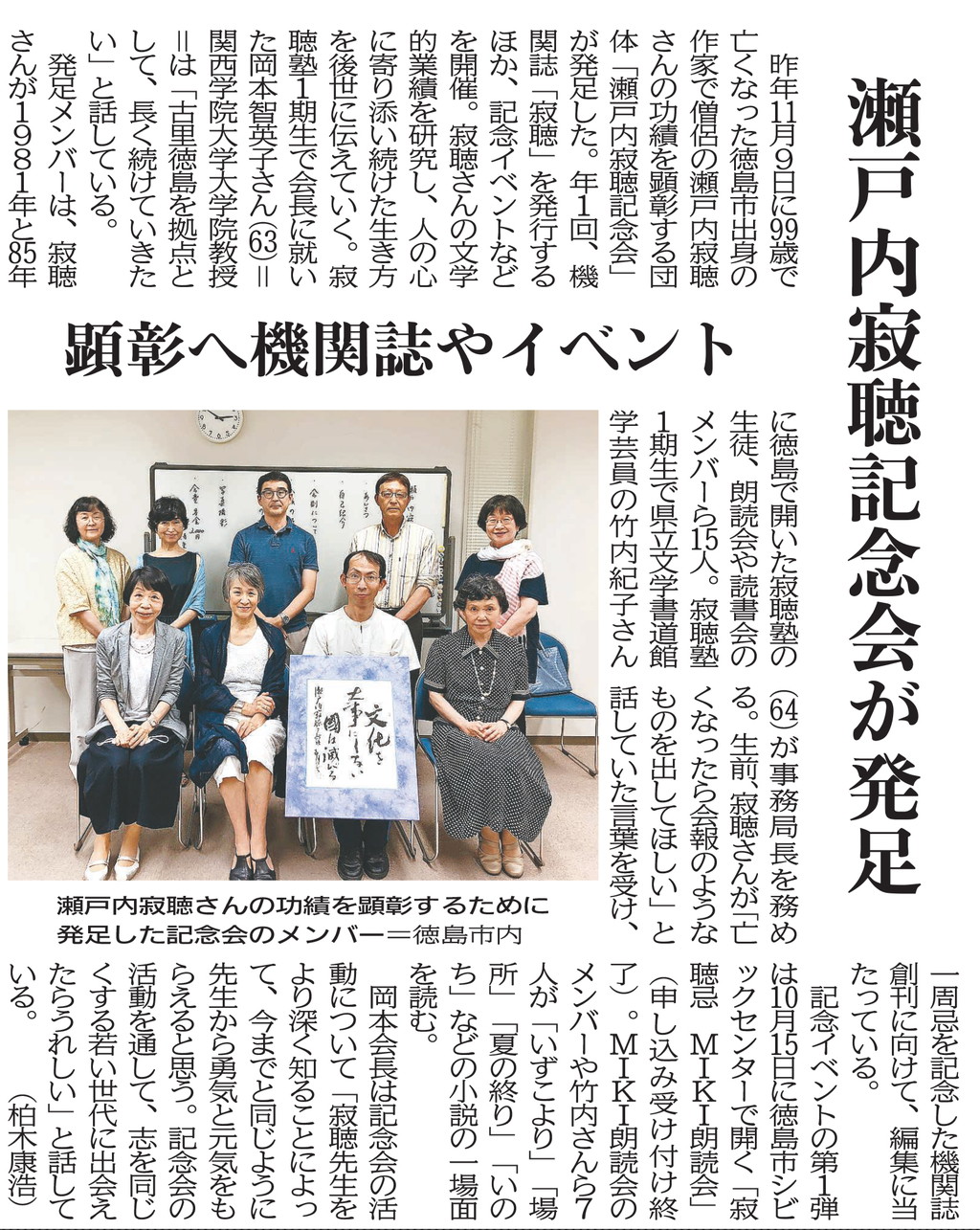 「瀬戸内寂聴記念会」は瀬戸内寂聴の業績を顕彰、研究し、その生き方を伝えていくことを目的とし、2022年6月22日に寂聴の出身地である徳島市で発足しました。