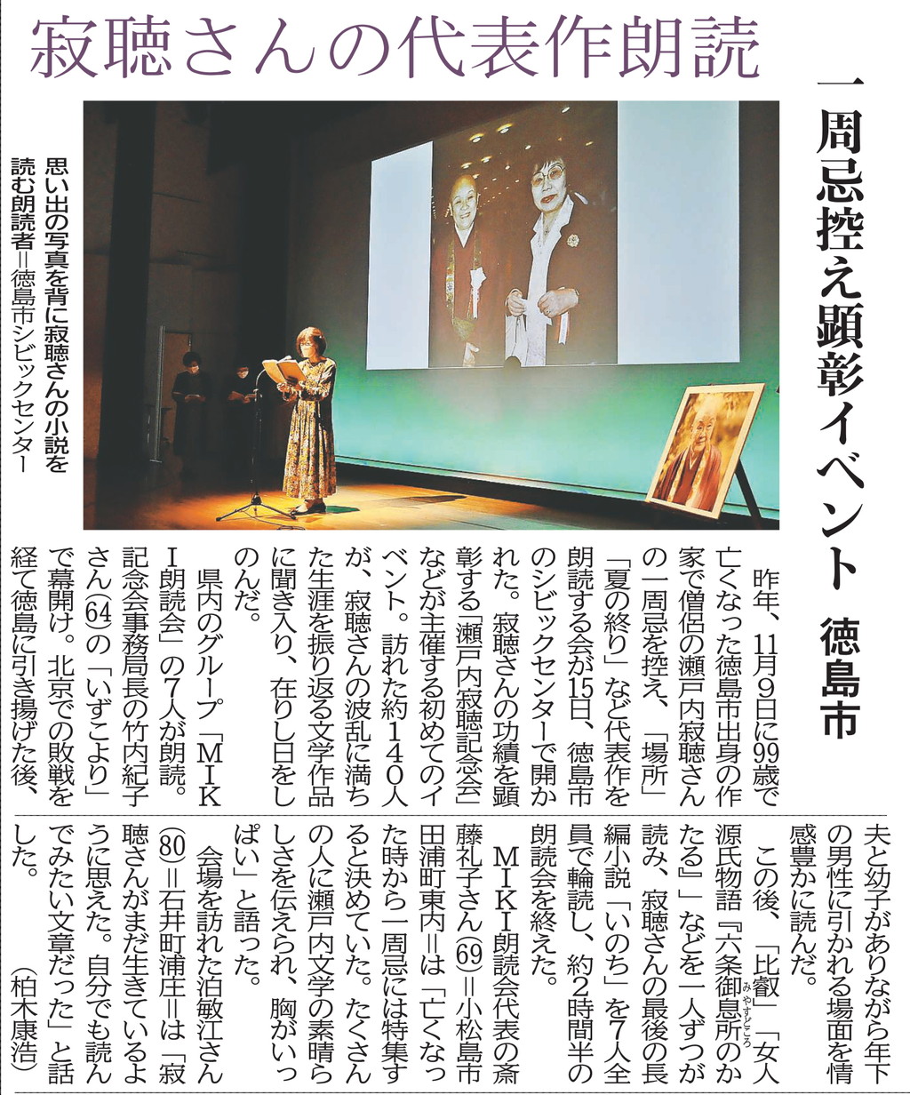 寂聴忌朗読会