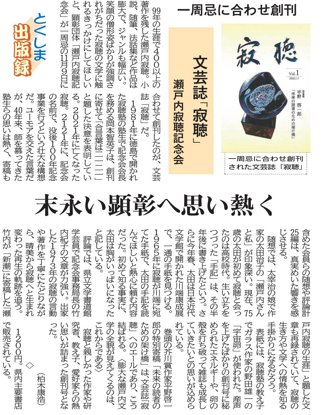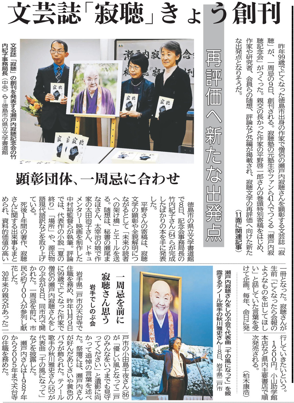文芸誌「寂聴」きょう創刊