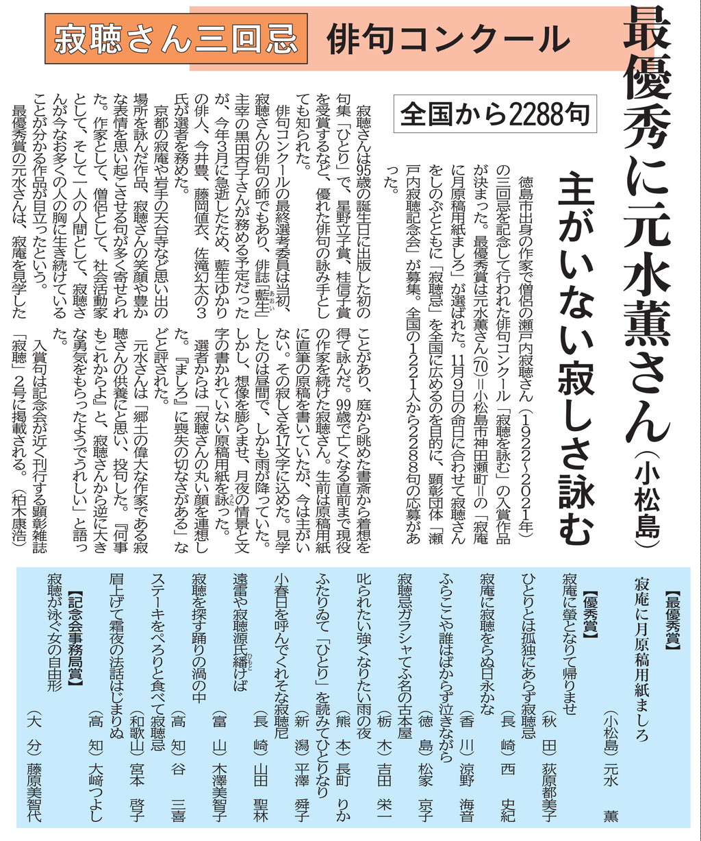 「寂聴を詠む」俳句